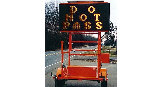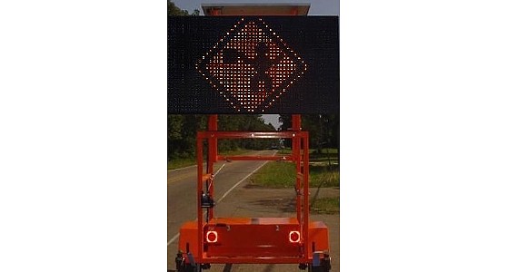 The Portable Changeable Message Sign, is a portable trailer mounted, full matrix, all LED variable message sign that is fully programmable. It is capable of displaying messages in either alphanumeric text or symbolic graphic representation. The trailer-mounted configuration affords an enhanced autonomy due to the solar charging of the battery power supply and the capability of optional remote operation. Additionally, this Message Board may be equipped with an optional radar feature to serve in a traffic calming capacity, through the display of actual vehicle speeds, in school zones, work zones, or on military bases.